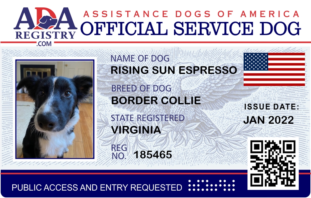 Service Dog Registration for Rising Sun Espresso