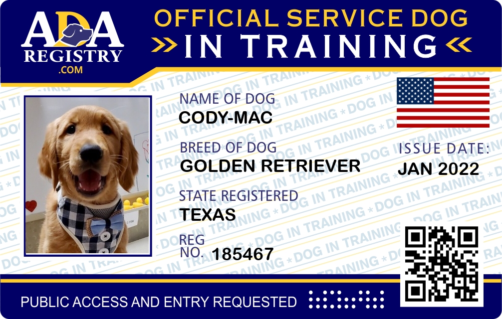 Service Dog In Training Registration for Cody-Mac