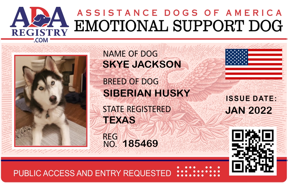 Emotional Support Dog Registration for Skye Jackson