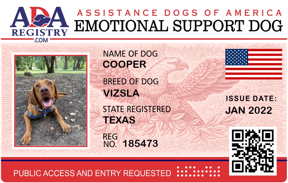 Emotional Support Dog Registration for Cooper
