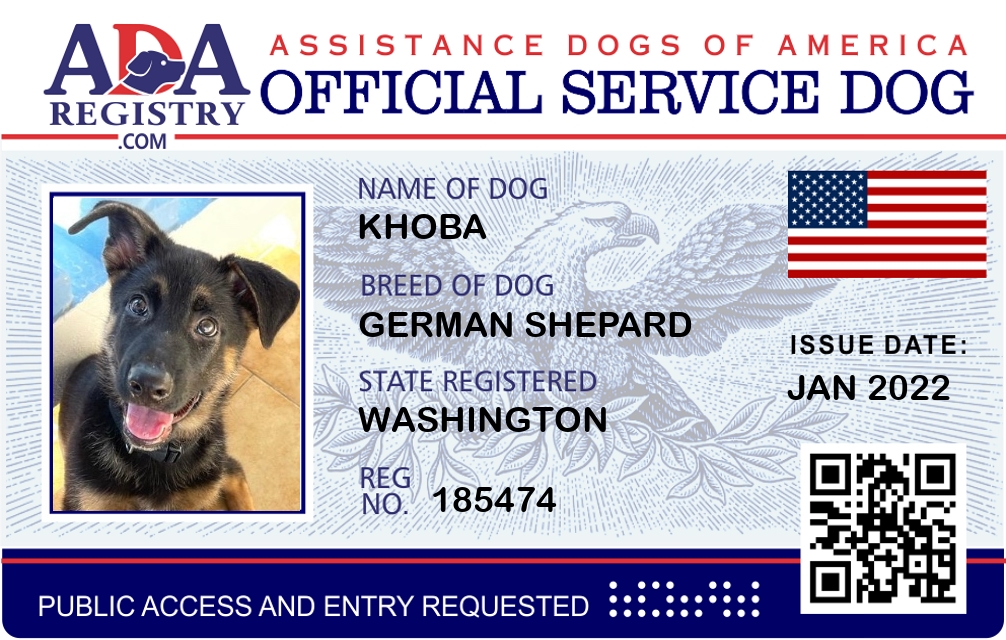 Service Dog Registration for Khoba