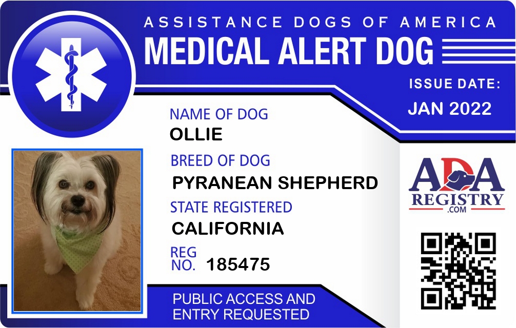 Medical Alert Dog Registration for Ollie