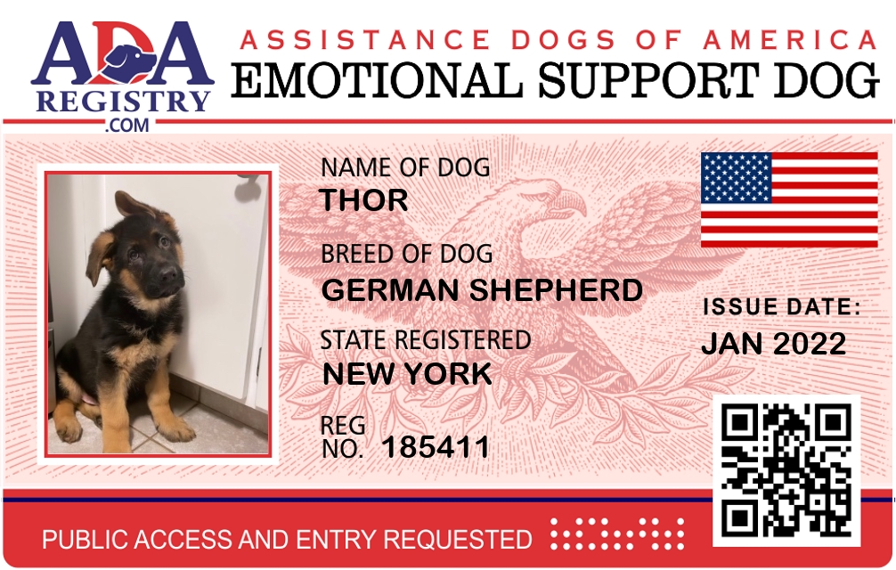 Emotional Support Dog Registration for Thor