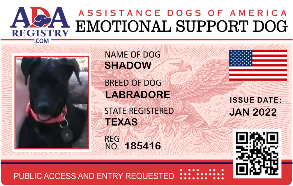 Emotional Support Dog Registration for Shadow