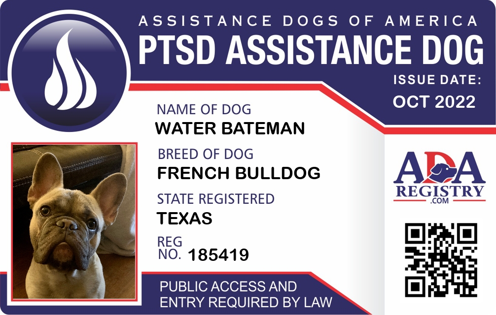 PTSD Assistance Dog Registration for Water Bateman