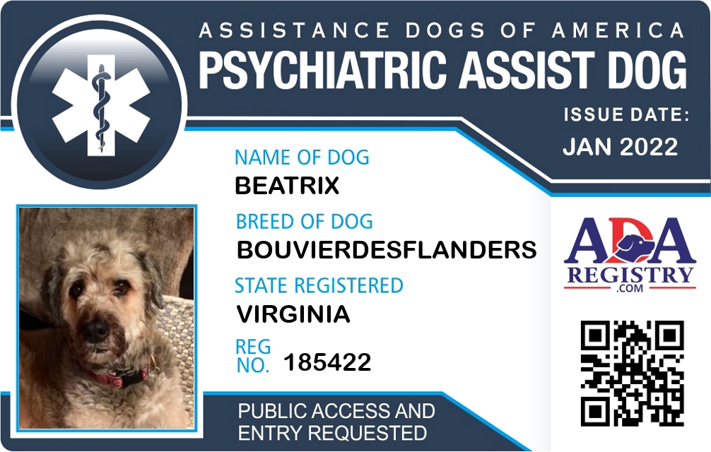 Psychiatric Service Dog Registration for Beatrix