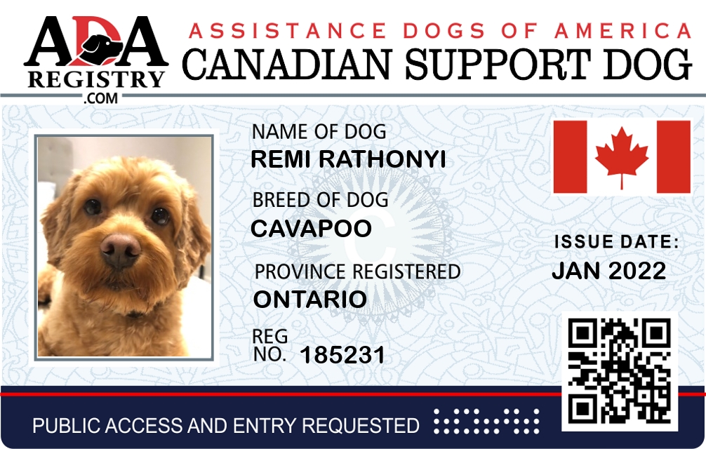 Emotional Support Dog Registration for Remi Rathonyi