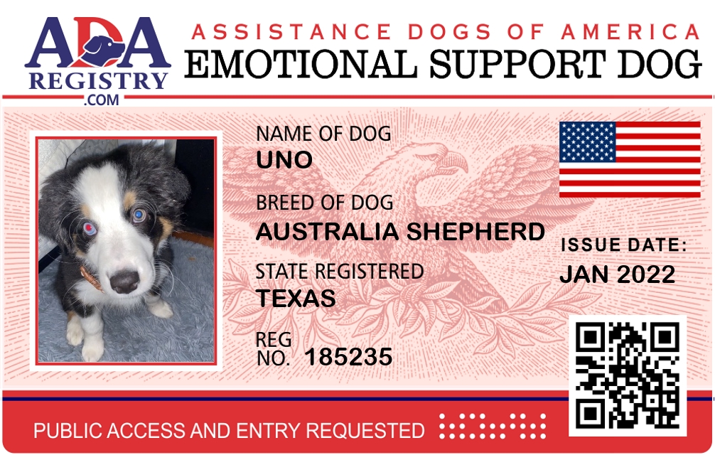 Emotional Support Dog Registration for Uno
