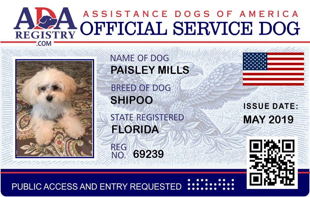 Service Dog Registration for Paisley Mills