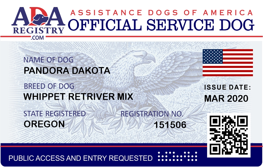 Service Dog Registration for Pandora dakota