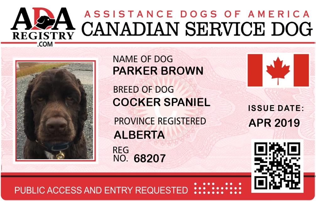 Service Dog Registration for Parker Brown