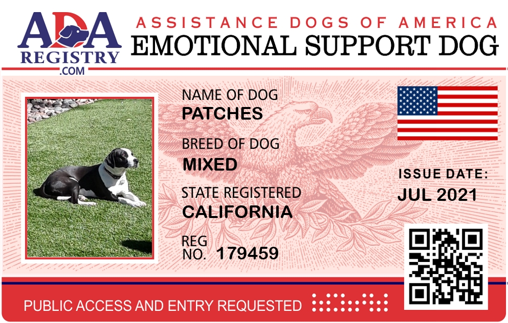 Emotional Support Dog Registration for Patches
