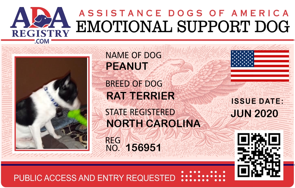 Emotional Support Dog Registration for Peanut