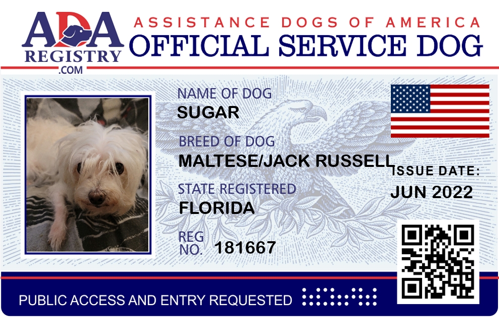 Member Since Sep 2021 Sugar is trained to alert Jeremy to take his medications, by pawing at his arm or chest. She also alerts her owner Jeremy when specific behaviors are happening, this assists her owner to stop or adjust behaviors. She is an 11 pound small dog, white in color. Maltese/Jack Russell mix. She has more of the Maltese look to her.