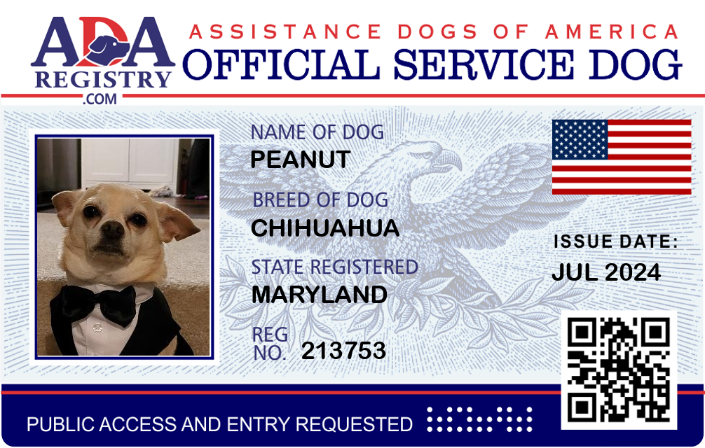 Emotional Support Dog Registration for Peanut