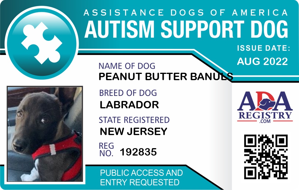 Autism Assistance Dog Registration for Peanut Butter Banuls