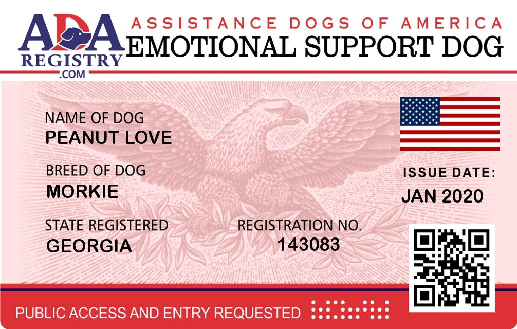 Emotional Support Dog Registration for PEANUT LOVE