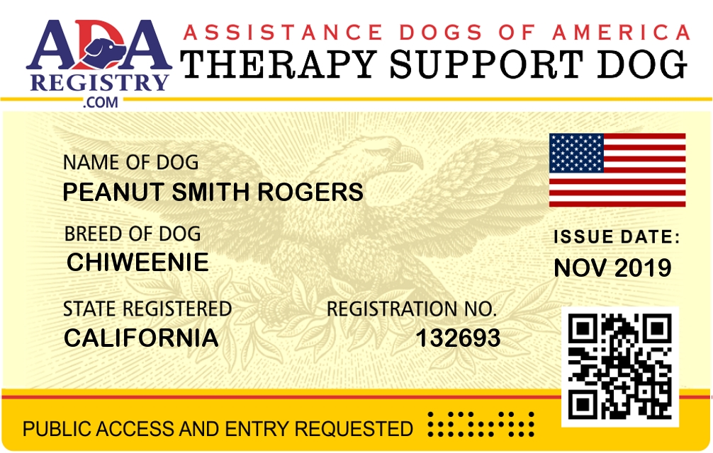 Therapy Dog Registration for Peanut Smith Rogers
