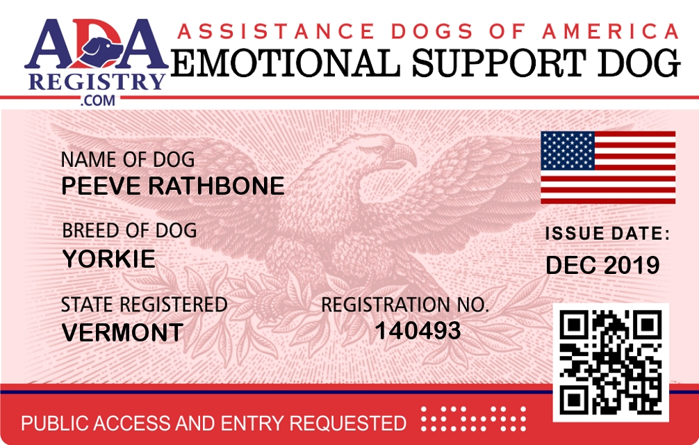 Emotional Support Dog Registration for Peeve Rathbone