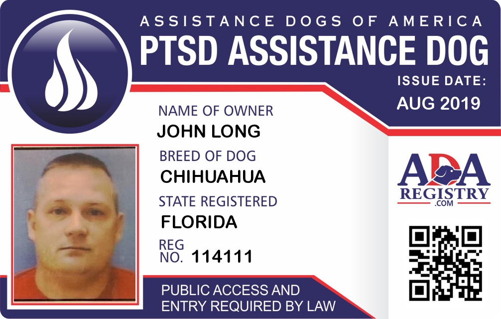 Registration Type: PTSD Assistance Dog Registration