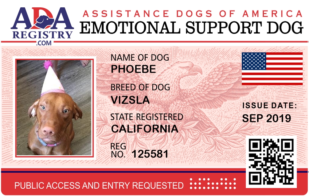 Emotional Support Dog Registration for Phoebe