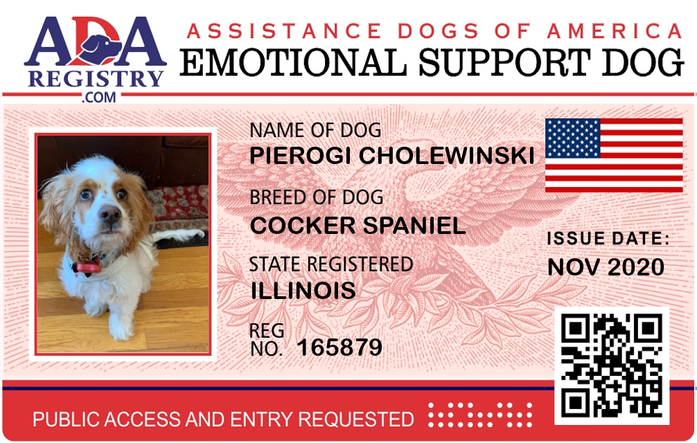 Emotional Support Dog Registration for Pierogi Cholewinski