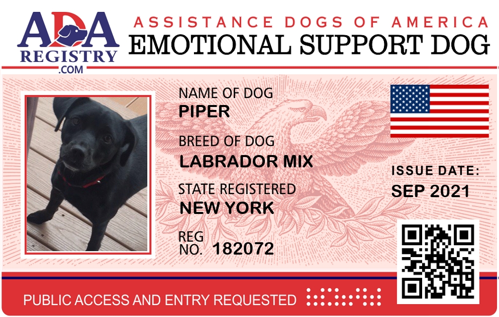 Emotional Support Dog Registration for Piper