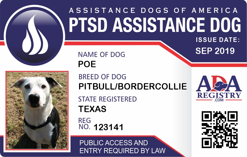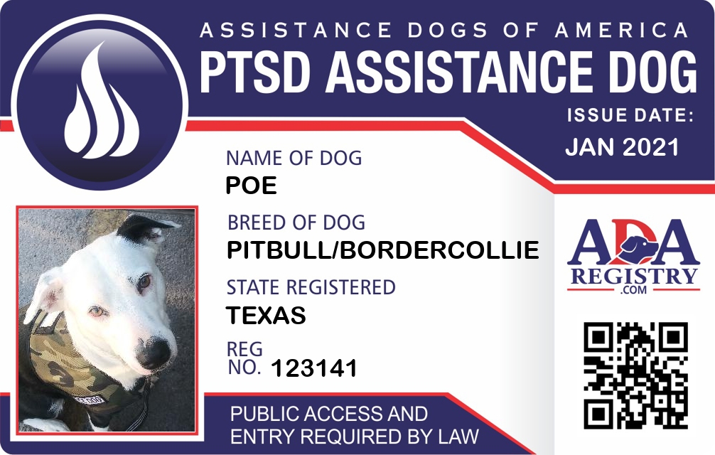 PTSD Assistance Dog Registration for Poe