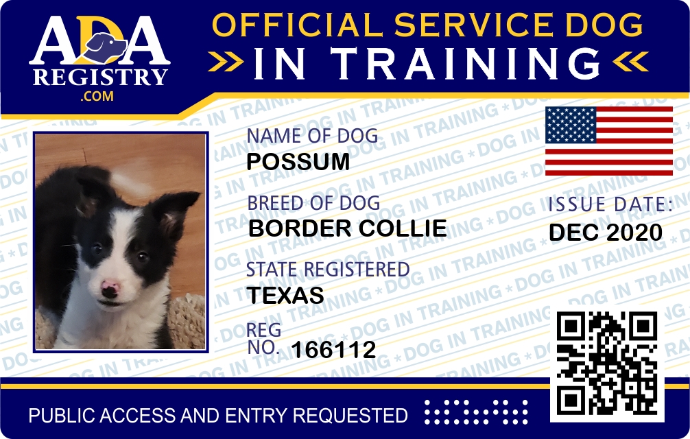 Service Dog In Training Registration for Possum
