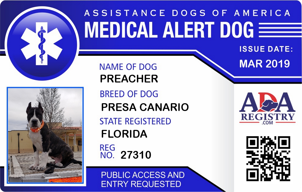 Medical Alert Dog Registration for Preacher
