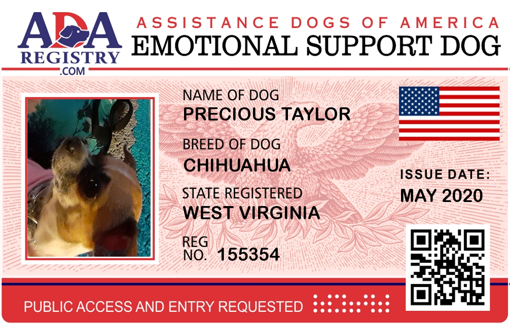 Emotional Support Dog Registration for Precious Taylor