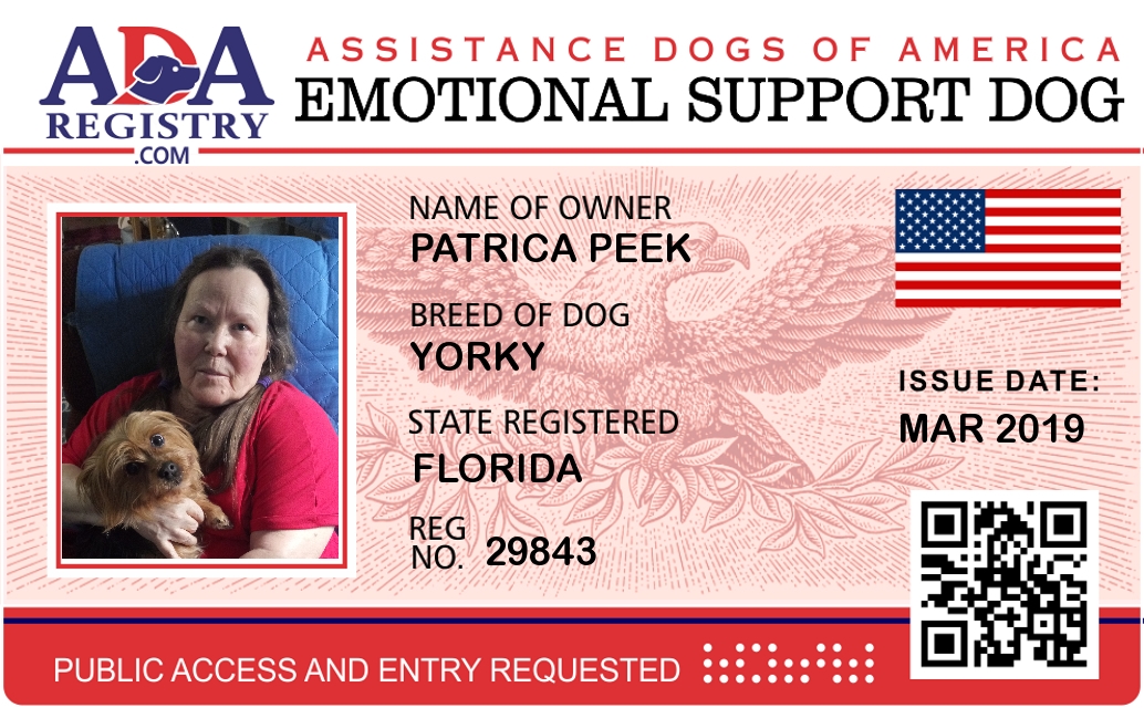 PTSD Assistance Dog Registration for Pumkin pepper peek