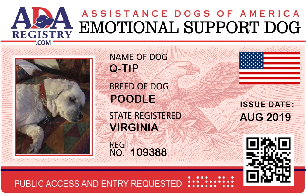 Emotional Support Dog Registration for Q-Tip