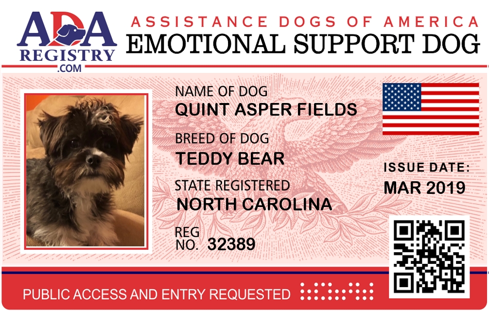 Emotional Support Dog Registration for Quint Asper Fields