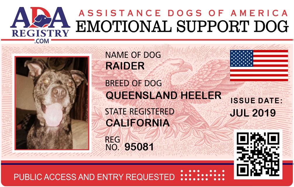 Emotional Support Dog Registration for Raider