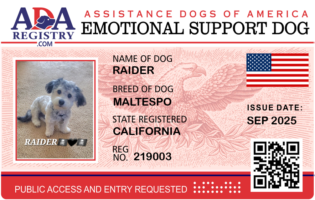 Emotional Support Dog Registration for Raider