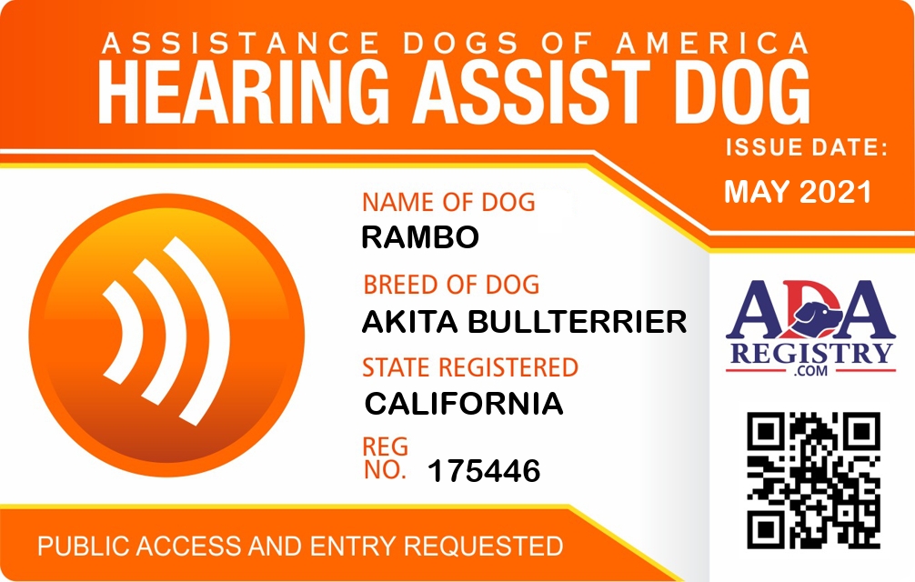 Hearing Assistance Dog Registration for Rambo