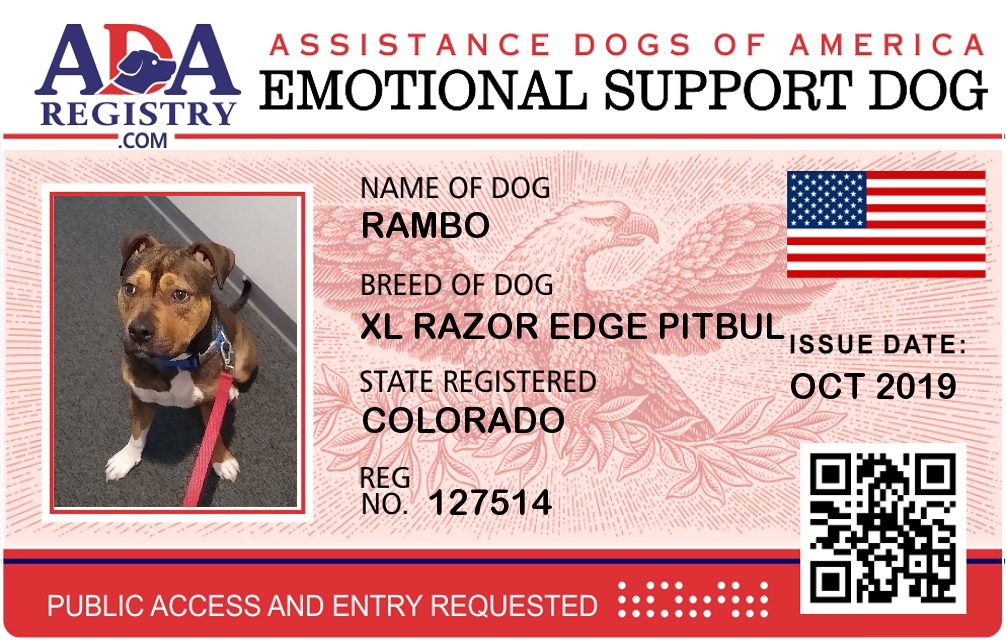 Emotional Support Dog Registration for Rambo