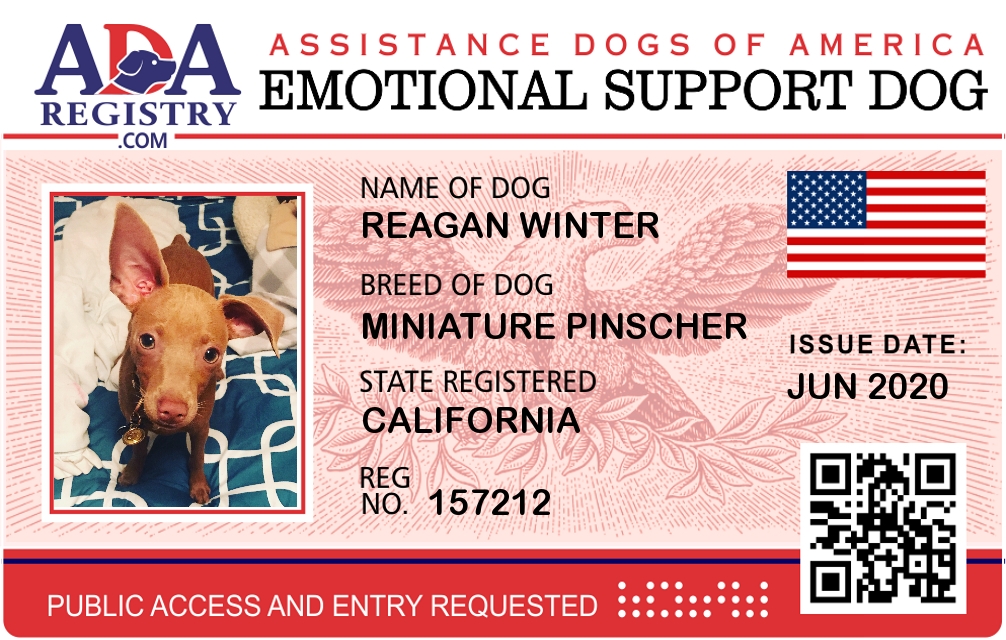 Emotional Support Dog Registration for Reagan Winter