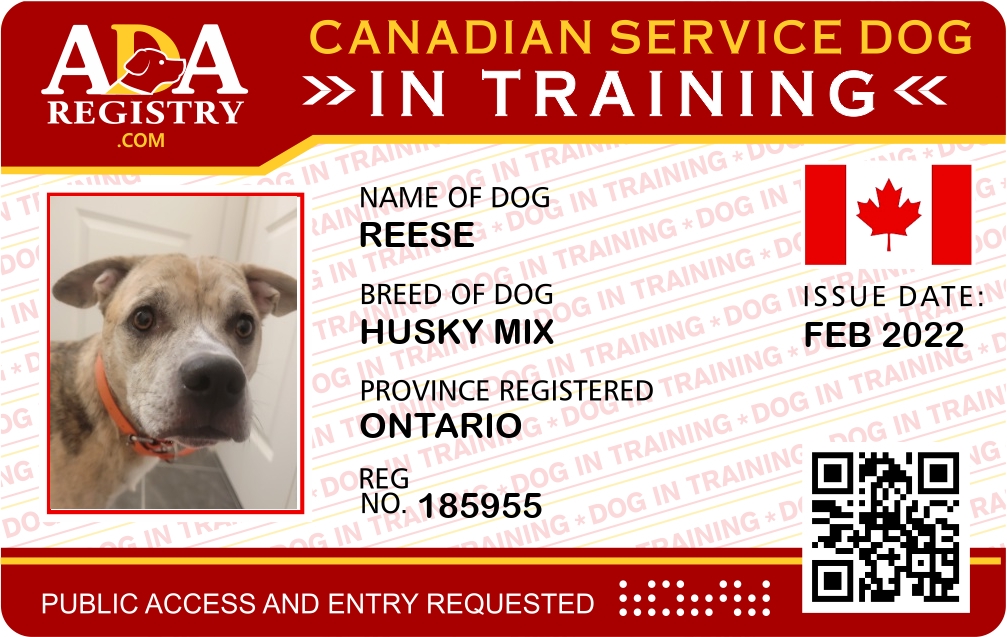 Service Dog In Training Registration for Reese