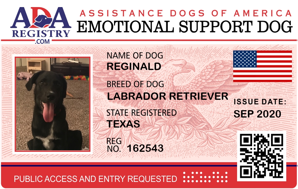 Emotional Support Dog Registration for Reginald