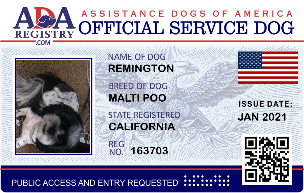 Service Dog Registration for Remington
