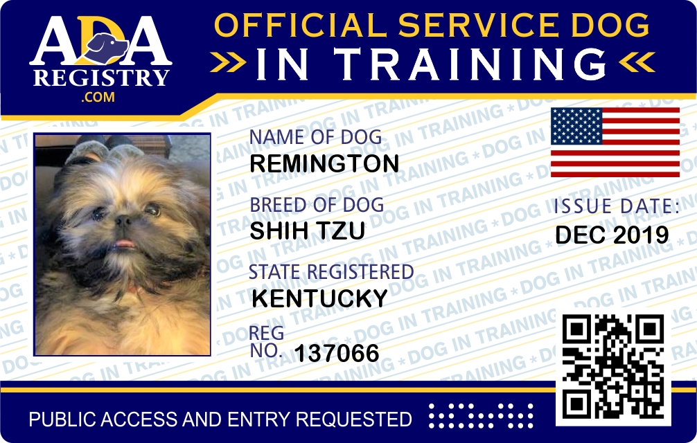 Service Dog In Training Registration for Remington
