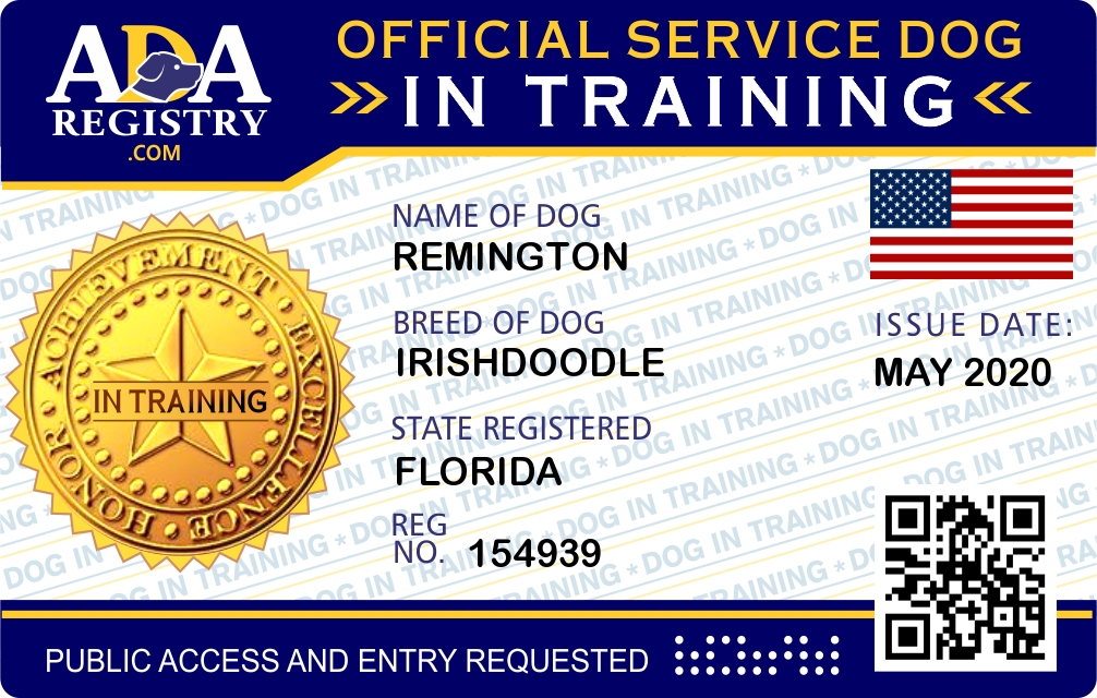 Service Dog In Training Registration for Remington