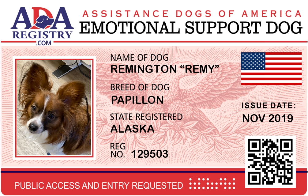 Emotional Support Dog Registration for Remington “Remy”