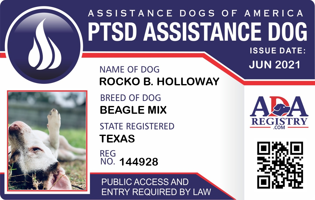 PTSD Assistance Dog Registration for Rocko B. Holloway