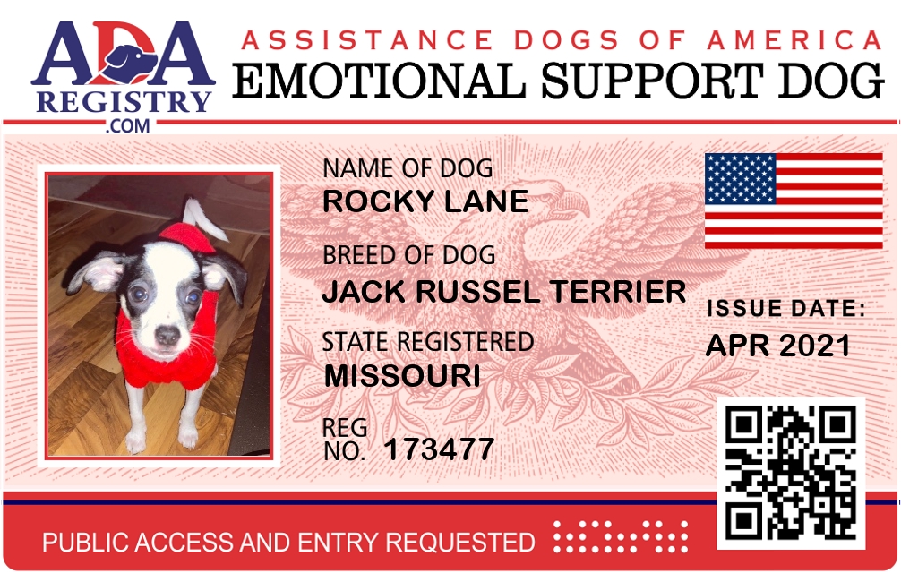 Emotional Support Dog Registration for Rocky Lane