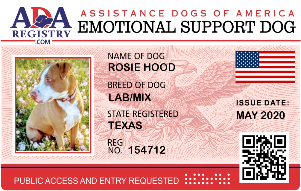 Emotional Support Dog Registration for Rosie Hood