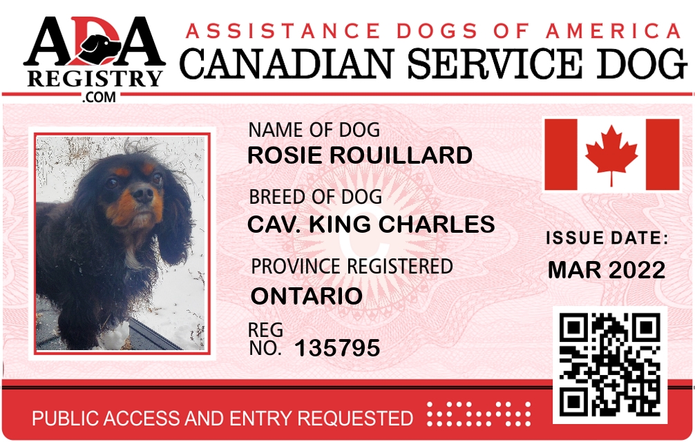 Service Dog Registration for Rosie Rouillard