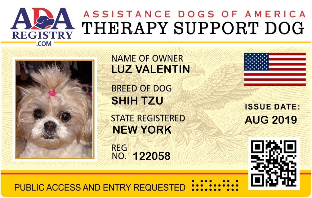 Emotional Support Dog Registration for Rosie Valentin-Vale